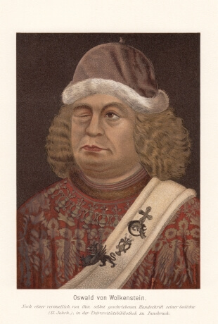 In a country where history resonates in every corner, there comes as no surprise when South Tyrol brings its very own special medieval figures. Chief among them was the one of Oswald von Wolkenstein. Allegedly born in Trostburg, by Ponte Gardena, in 1377, from the age of ten he started travelling across the world and became a knight, a messenger, a poet, a composer and a diplomat to the Holy Roman Emperor Sigismund. His Lieder are said to have influenced German language and are a proof of how highly educated he was – he is said to have spoken twelve languages.
