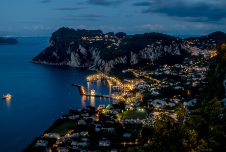 Not to be missed: Blue, Green, Red and White Grottoes | The Statua dello Scugnizzo | Via Krupp | Tiberius’ “jump” | The Natural Arch | Villa Malaparte from the sea | The Bay of Marina Piccola | Punta Carena Lighthouse | The Coral Grotto | The Faraglioni | A cockatil in Piazetta | A climb of Mount Solaro with the chairlift | A walk to Tragara | An eventing at The Taverna | Anacapri | Gaze out with the Sphinx of Villa San Michele | The Gardens of Augustus | Boat trip around the island | Villa Jovis | Via Camerelle for shopping | Have a great Pizza | Buy handmade Capri sandals | The Phoenician Steps