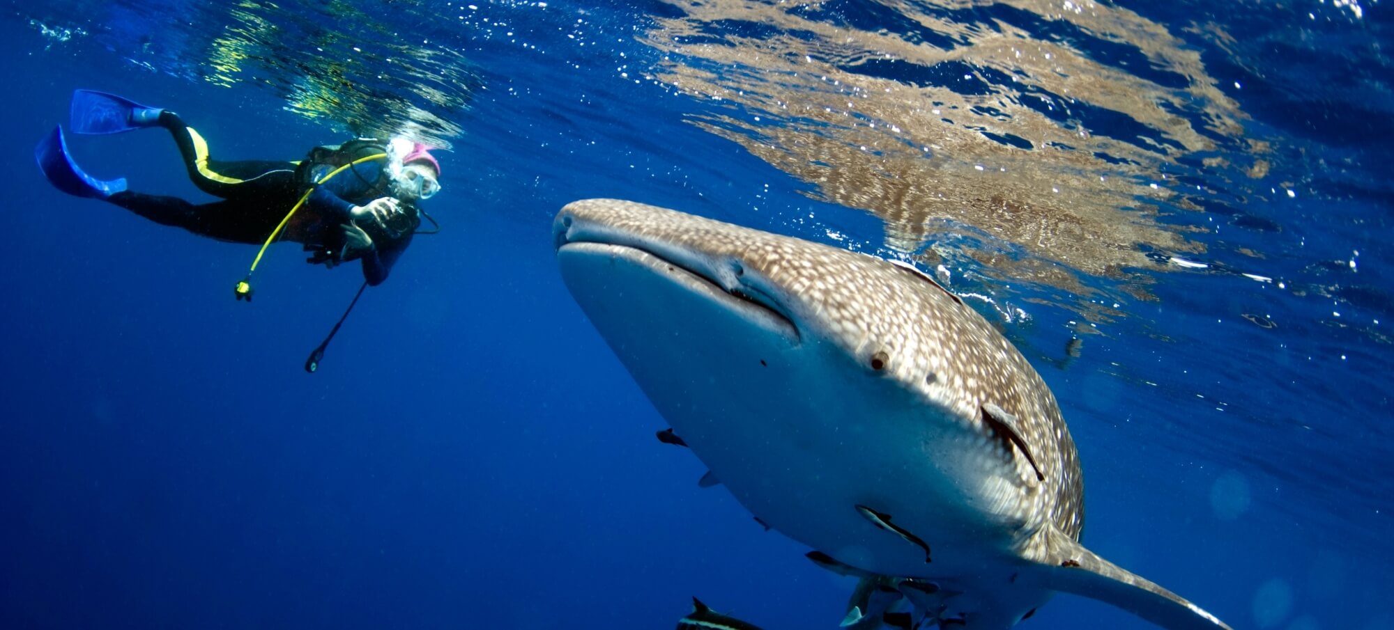 You will need to book an organised tour and fear not, you won’t need to feel like a daring explorer, as whale sharks are fearless. Just after the reef, take a dip and swim alongside these gentle giants. Immense and sublime