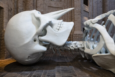 Churches contain works of various shapes and eras, their architecture reflecting the taste, knowledge and art trend of a specific time, but they rarely contain such imposing artworks as the Calamita Cosmica, a 24-metre long skeleton that adorns the bare church of Santissima Trinitá in Foligno. Its dimensions itself hint at an alien invasion, with the nose of the figure clearly the beak of a bird, adding mystery to this figure. The installation is the work of the artist Gino de Dominicis, executed at the end of the 1980s and shown in several places such as Versailles, the Royal Palace of Capodimonte, Rome and Brussels over the decades. The long metal shaft placed alongside it points towards the dome of the church and well beyond, symbolising the union of man and the universe. Carried out with iron, polystyrene and fiberglass, the late artist originally wanted to cover the bones of the skeleton with gold leaf; this idea only remained a wish that was never fulfilled, but the aura of this immense, intriguing and peculiar work still impresses visitors, ready to ask questions on our role in life.