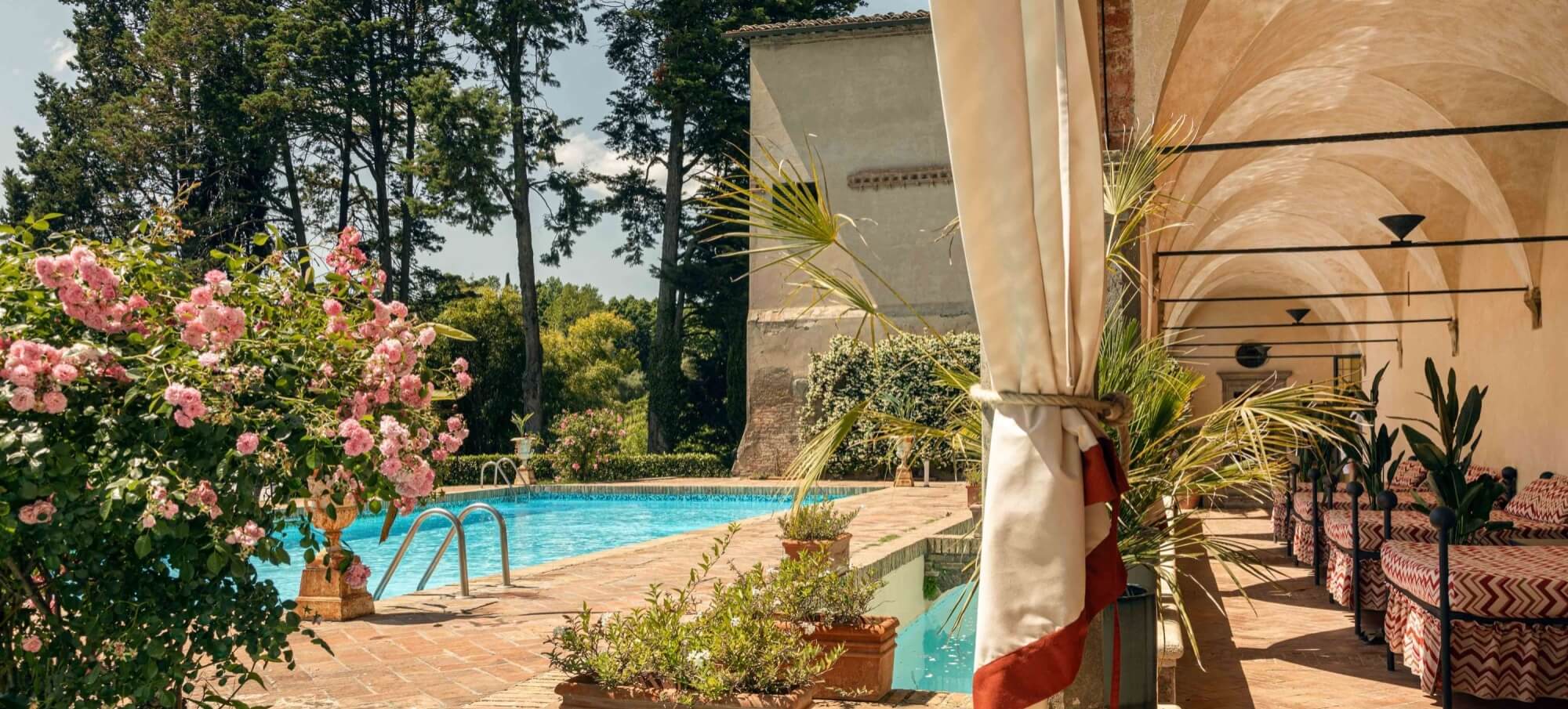 Each room and suite is unique, telling stories of stone, wood, and fine fabrics, where tradition meets refined design. Cloisters, secret gardens, and the still-active church evoke a sense of intimacy and reflection, offering guests an authentic Tuscan experience.