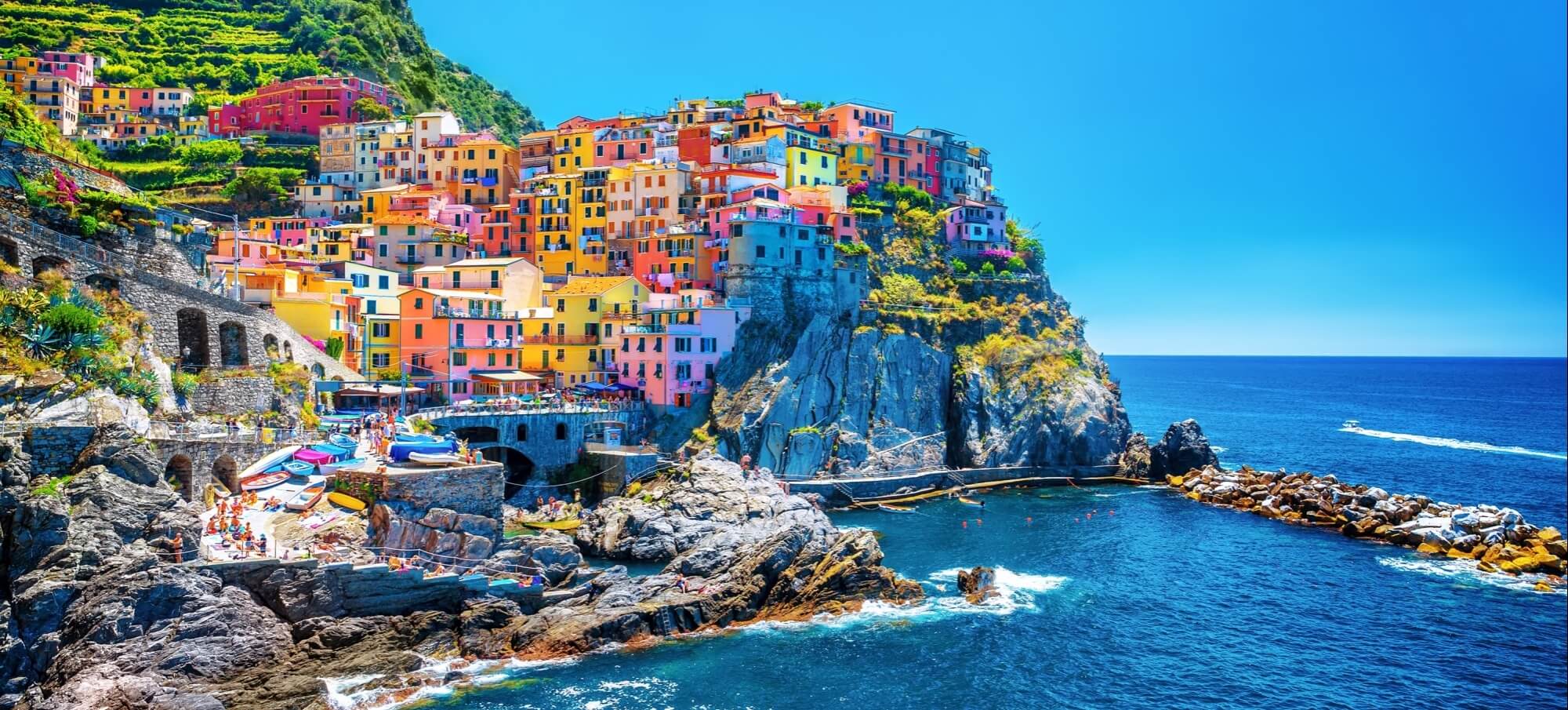 A UNESCO World Heritage Site since 1997, sublime Cinque Terre is a collection of five lovely fishing villages making up this splendid stretch on the eastern shores of Liguria. Capturing the imagination of many a traveller, Monterosso al Mare, Vernazza, Corniglia, Manarola and Riomaggiore date back to the Middle Ages and boast terraced cliffs cascading onto the sea in a picturesque fashion, with a series of small fields and gardens that make the scene unique. The villages are best explored on foot – the Alta Via delle Cinque Terre connects Portovenere in the south of the area with Levanto  - with the famous Via dell’amore having recently reopened, but can also be admired and visited with a lovely boat trip. Train hopping is also an option, giving you the chance to explore each area and its distinct soul. The peculiarity that makes this part of Italy loved the world over is the way these fishing villages were built: create your own travel romance by exploring them all in a journey of delight. Monterosso, its lemon trees and convent, Manarola and its grapes that yield supreme wines, Vernazza and its magic natural harbour, Riomaggiore and its medieval houses, Corniglia and its dazzling belvedere for a sublime experience.