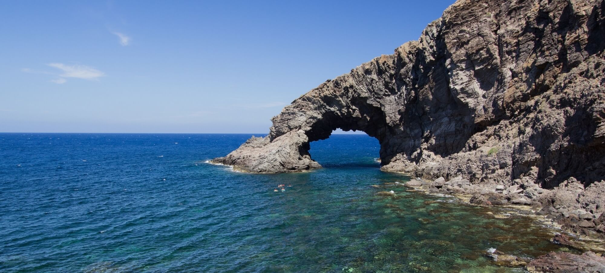 There is more to life than English Durdle Door, French Ètretat, Scottish Staffa and Fingal’s Cave or the Giants’ Causeway in Ireland. The raw force of the wind and the sea contributed to creating very peculiar rock formations all over the world, and Pantelleria enjoys its fair share of stardom with an equally stupendous lava stone arch, known as Arco dell’Elefante (Elephant Arch).  It lies to the east of the island and has become its symbol; sitting between Cala Levante and Cala Tramontana, whatever direction the wind blows, you will always find the ideal place to swim and enjoy the cobalt blue sea in calm waters, the two coves facing opposite directions.