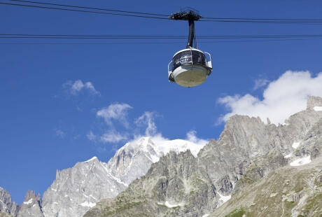 Reach the sky and feel you belong to it. Travelling to the staggering height of Punta Helbronner (3466m) is a sensational experience in itself. Picture rotating gondolas and superb views onto iconic places where pages of mountaineering history were written. Aiguille Noire, les Dames Anglaises, the Innominata and the whole parade of unique peaks and glaciers that make up the Mont Blanc chain. Walk on the spectacular outside terrace facing Mont Blanc and take it all in. Enjoy a meal at the panoramic bistro or wine tasting at height. Peruse the bookshop and discover the Crystal exhibition. To make it extra special, take the small cable car joining the Italian side to the French one, reaching the Aiguille du Midi station (3842m) in a stunning journey amid incredible glaciers. Explore the Saussurea botanical garden at the Pavillon stop (2173 m), enjoy a meal at the alpine restaurant or watch a film at the Alpine Cinema. We know you will just love this!
