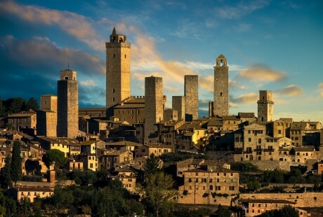 Move south and touch on Lucca and its dazzling Piazza Anfiteatro, embracing the city with its medieval touch, perhaps walking along the external walls to grasp the marvel of the city or going up Torre Guinigi to see the surrounding countryside. Take the road that snakes up the hill to striking Volterra, dominating the plain from a vantage point: its medieval alleys are magnificent – as is the precious Art Gallery with fine works by Luca Signorelli, Ghirlandaio and Rosso Fiorentino. Choose a shiny piece of locally produced alabaster before travelling to epic San Gimignano, a compelling sight with its 14 medieval towers and exceptional 13th c. Palazzo Comunale. Try local Vernaccia wine and glorious food before reaching the splendid Siena countryside
