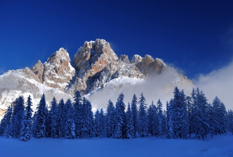 Towering peaks and soothing snow-covered meadows, frozen waterfalls and lakes, the shimmering sun rays adding a magic spell: this is Christmas in the Dolomites, when a symphony and sounds and a vibrant palette of colours keep us company and feed our souls.