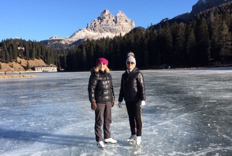 In this photo I'm skating on Lake Misurina with a stunning view of Tre Cime di Lavaredo